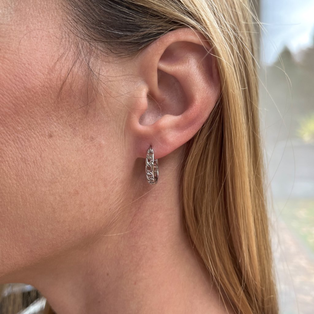 Dizajn týchto náušníc vychádza z klasického tvaru kruhu s priemerom 15 mm a šírkou 3 mm, ktorý je doplnený originálnym retiazkovým prvkom. Kĺbové zapínanie zaručuje, že náušnice zostanú bezpečne na svojom mieste. Náušnice sa dodávajú v darčekovej krabičke, takže sú ideálnym darčekom pre niekoho, koho máte radi, alebo ako výnimočný doplnok do vašej šperkovnice.
