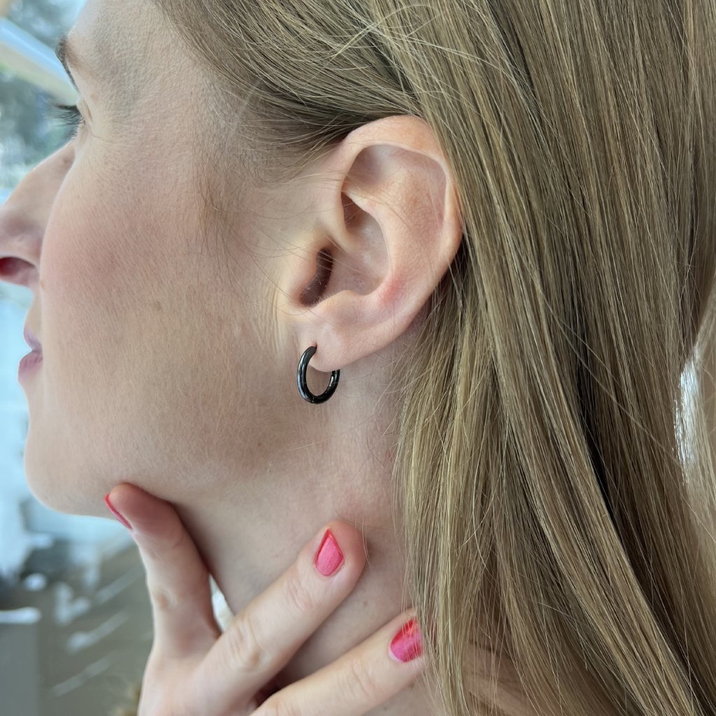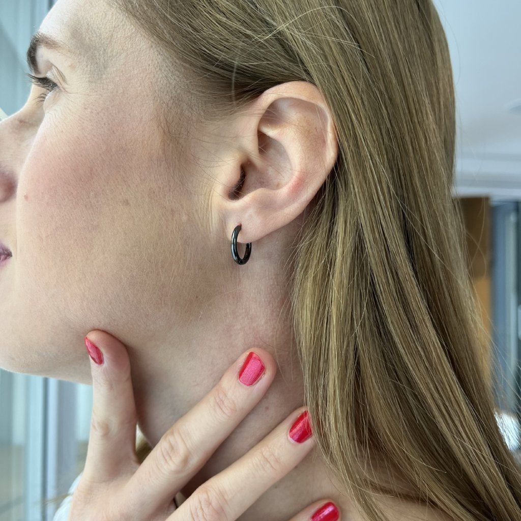 Tieto čierne náušnice s obručou sú v elegantnom darčeková krabička, čo z nich robí skvelý darček pre niekoho, koho milujete.