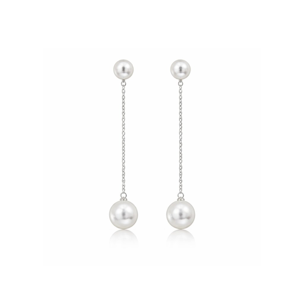 Každá náušnica je vyrobená z najkvalitnejšieho striebra 925 a je vkusne osadená dvoma bielymi perlami, ktoré sú spojené jemnou retiazkou pre dokonalú rovnováhu medzi klasickým a moderným dizajnom.
