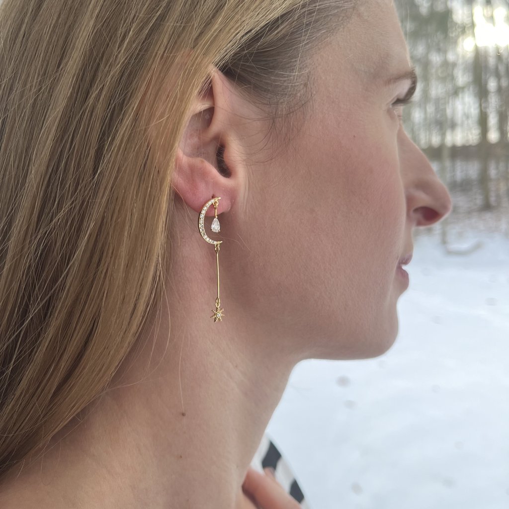 Náušnice sa dodávajú v darčekovej krabičke, takže sú skvelou voľbou na darček pre vás alebo niekoho blízkeho. Objednajte si tieto náušnice s mesiacom a hviezdou a nechajte sa očariť ich šarmom a eleganciou.
