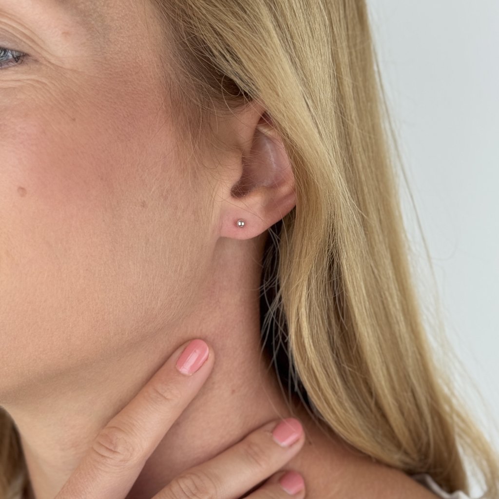 Tieto náušnice sú vyrobené z kvalitného striebra 925/1000 a sú upravené ródiovaním, ktoré zaručuje ich trvanlivosť a stály lesk. Priemer korálika je 3 mm, čo je ideálna veľkosť pre vynikajúcu viditeľnosť bez toho, aby bol príliš nápadný.