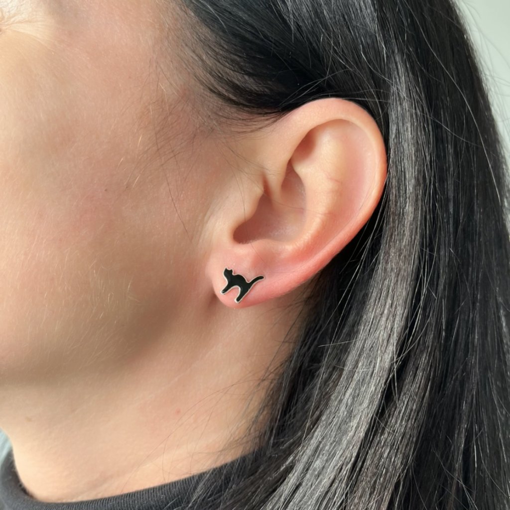 10573 Strieborné náušnice BLACK CAT Ag925/1000; ≤0,47 g