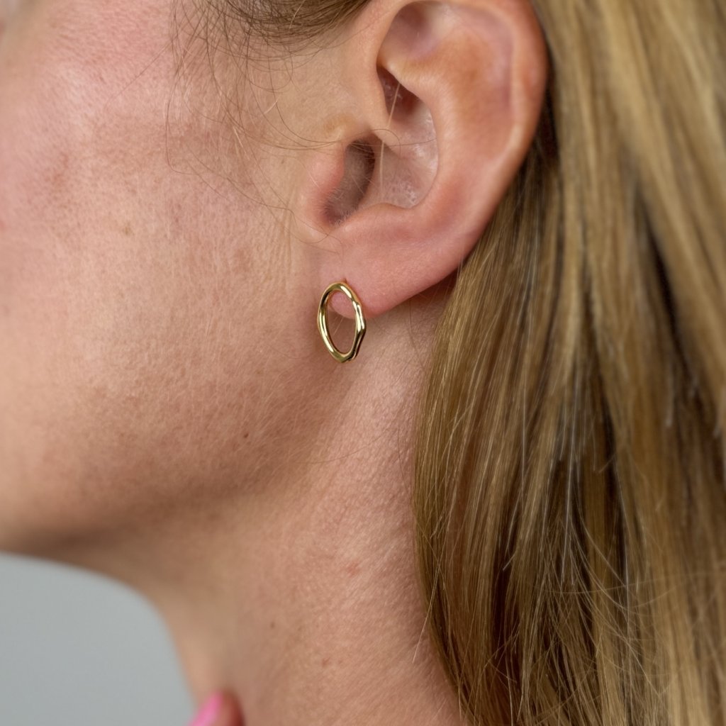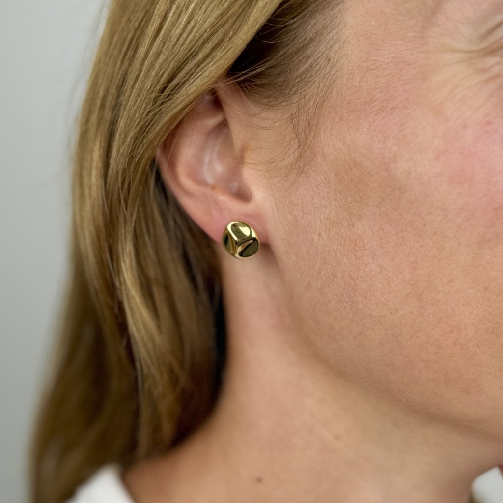 Náušnice sú vyrobené z kvalitného striebra 925/1000 a ich povrch je upravený pozlátením, ktoré im dodáva teplý zlatistý odtieň a zaručuje dlhotrvajúci lesk a odolnosť voči opotrebovaniu. Zapínanie na gombíky zaručuje pohodlné a bezpečné nosenie počas celého dňa.