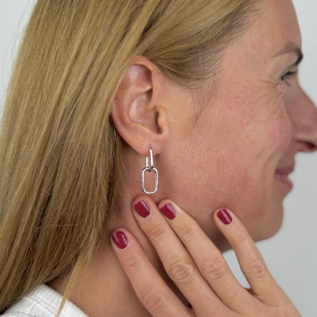 Tieto náušnice, vyrobené z kvalitného striebra Ag925/1000 a upravené ródiom pre väčší lesk a odolnosť proti opotrebovaniu, zaujmú na prvý pohľad. Náušnice s rozmermi 10 × 27 mm sú dostatočne odvážne, aby upútali pozornosť, ale stále sú nenápadné na každodenné nosenie. Vhodné pre ženy aj mužov s vycibreným vkusom.