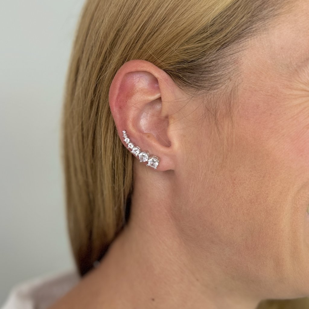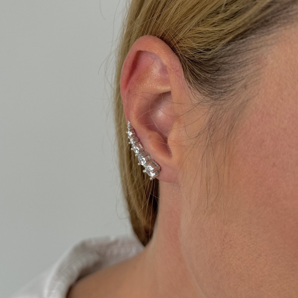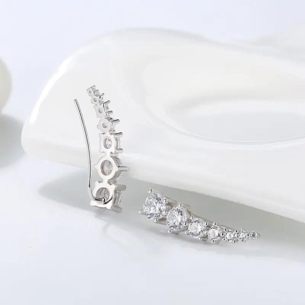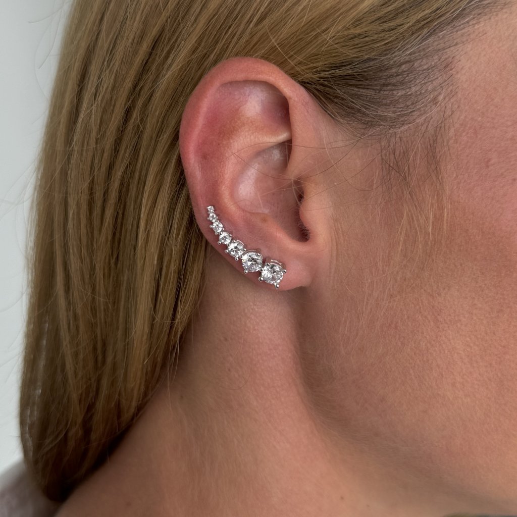 Náušnice sú osadené trblietavými zirkónmi, ktoré im dodávajú iskru a luxusný nádych. Vďaka dĺžke 27 mm a šírke 5 mm sú náušnice dostatočne výrazné a nepôsobia prehnane.
