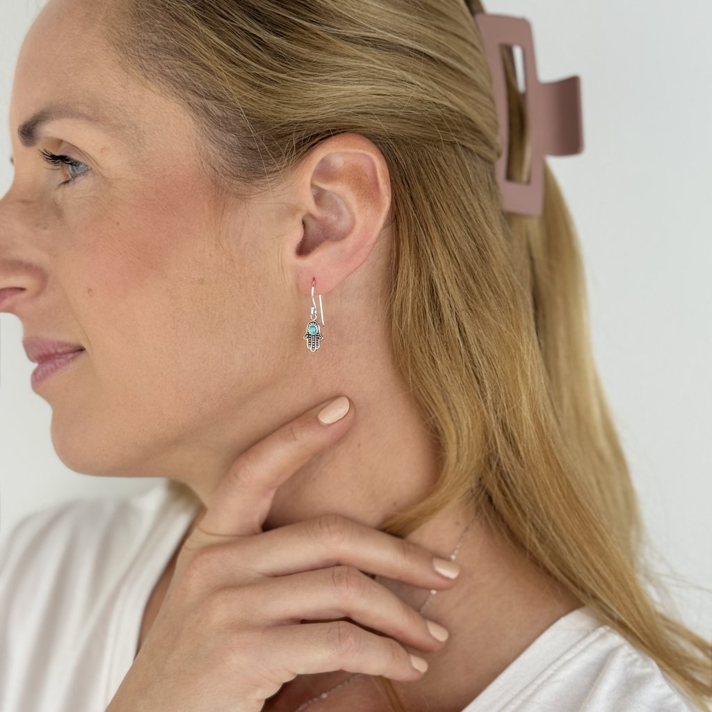 Objavte krásu a symboliku v našich strieborných náušniciach s príveskom HAMSA, ktoré sú ideálnou voľbou pre ženy a dievčatá hľadajúce štýl a ochranu. Tieto visiace náušnice kombinujú moderný dizajn so starobylým symbolom ruky HAMSA, známym pre svoju schopnosť chrániť pred zlom a prinášať šťastie.