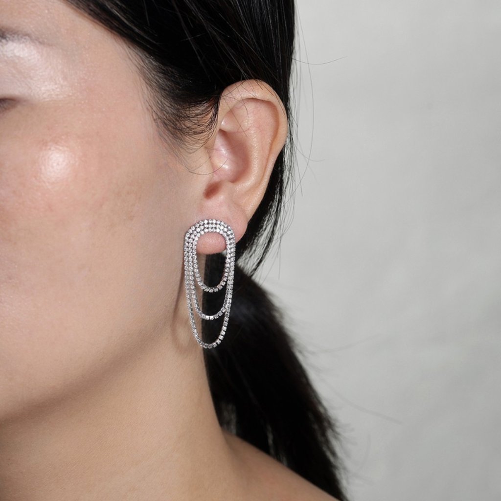 Okouzlující tenisové náušnice DIONA z rhodiovaného stříbra 925 s řadou třpytivých čirých zirkonů (průměr 1 mm). Elegantné retiazkové náušnice s dĺžkou 40 mm sú ideálne pre ženy, ktoré chcú zažiariť na plese, svadbe či inej slávnostnej príležitosti. Bezpečné zapínanie na puzetu. Dodávajú sa v darčekovej krabičke – perfektný darček pre výnimočnú ženu.