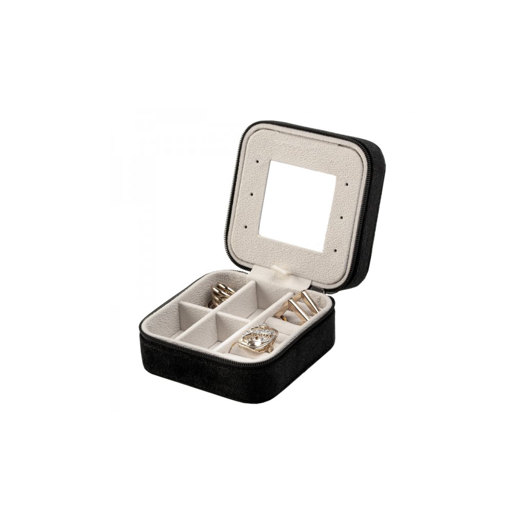 Napriek svojim kompaktným rozmerom 100 × 100 × 55 mm ponúka prekvapivo veľkorysý úložný priestor pre všetky typy šperkov – od náušníc a prsteňov až po náramky, retiazky a prívesky. Vďaka tejto veľkosti ju ľahko vložíte do kabelky, batohu alebo cestovného kufra, a tak budete mať svoje cennosti vždy pod kontrolou.