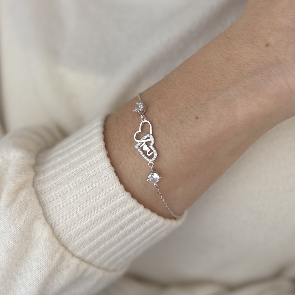 10107 Strieborný náramok LOVE dvojité srdce Ag925/1000; ≤2,37 g