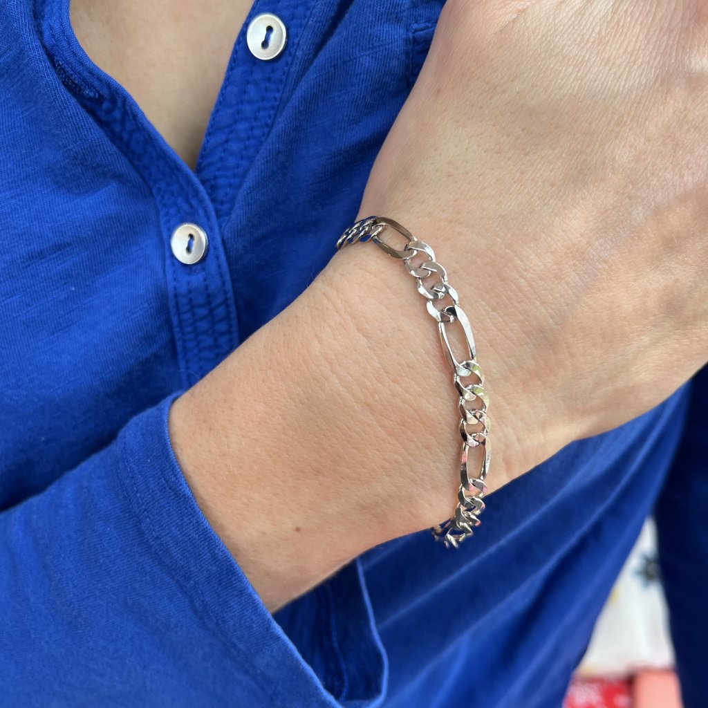 Tento unisex náramok je vyrobený z kvalitného striebra 925 a je rhodiovaný, čo zaručuje vysoký lesk a odolnosť voči poškriabaniu a oxidácii. Tento náramok so šírkou 5 mm je dostatočne veľký na to, aby upútal pozornosť, ale zároveň dostatočne jemný, aby nenarušil eleganciu vášho vzhľadu. Dĺžka náramku je 15+3 cm.