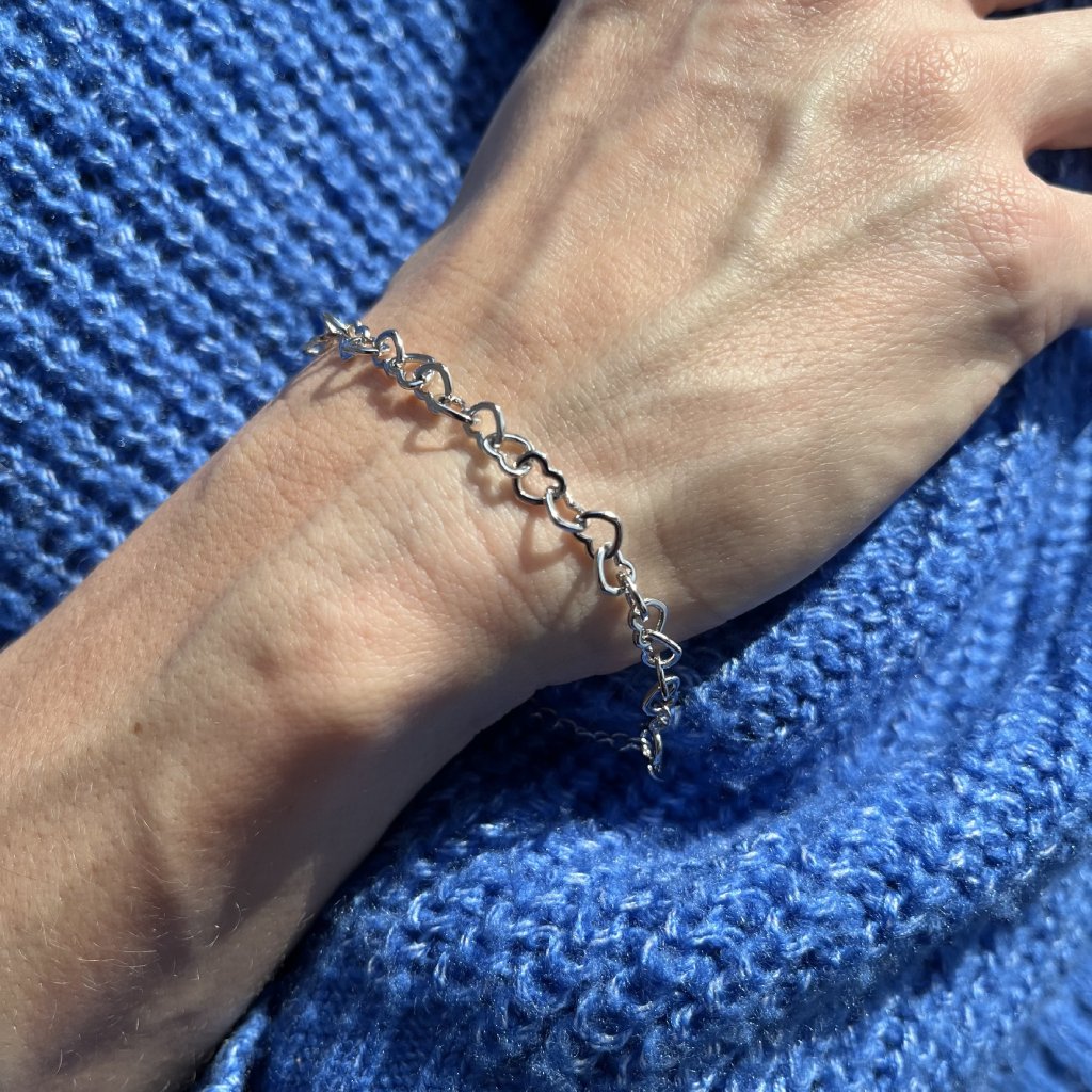 Tento náramok je vyrobený zo striebra Ag925/1000 a má retiazku vzájomne prepojených srdiečok, ktoré spolu tvoria krásny a elegantný šperk. Dĺžka náramku 17 + 3 cm umožňuje pohodlné nosenie a prispôsobenie veľkosti vášho zápästia. Rhodiovanie zaručuje, že si náramok zachová svoj lesklý vzhľad bez rizika poškriabania, straty lesku alebo sčernania.