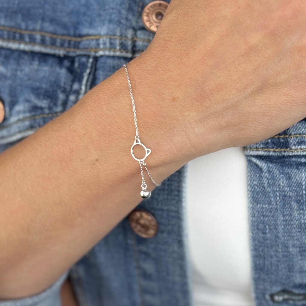 Strieborný náramok ELISA s roztomilým motívom mačky, ideálny darček pre všetkých milovníkov mačiek. Tento náramok je vyrobený z kvalitného striebra Ag925/1000 a ošetrený antikoróznou úpravou pre dlhotrvajúci lesk a odolnosť.