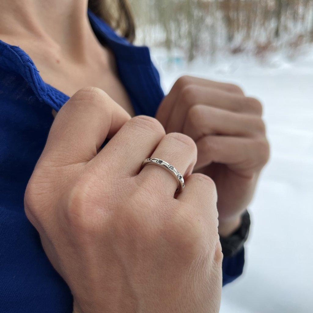 Tento jedinečný šperk je vyrobený zo striebra 925, ktoré je vysoko kvalitné a odolné. Prsteň je tiež upravený ródiovaním, ktoré zaručuje jeho dlhodobý lesk a odolnosť voči poškriabaniu. Tento šperk sa dodáva v elegantnej darčekovej krabičke, ktorá zdôrazňuje jeho jedinečnosť.