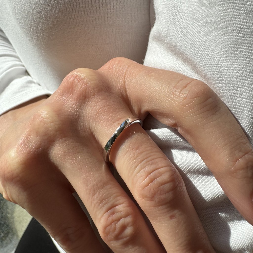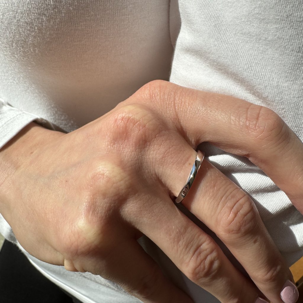 Tento minimalistický šperk je vyrobený z kvalitného striebra 925, čo zaručuje jeho dlhotrvajúcu odolnosť a žiarivý lesk. Vďaka ródiovej povrchovej úprave je prsteň nádherne lesklý a odolný voči poškriabaniu a opotrebovaniu.