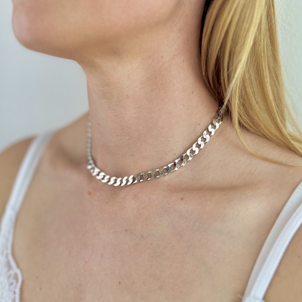 S dĺžkou 40 cm je ideálny na nosenie tesne pri krku, kde vynikne jeho impozantná šírka. Vďaka precíznemu spracovaniu je veľmi odolný a vhodný na každodenné nosenie. Ródiovaná povrchová úprava minimalizuje nutnosť údržby.