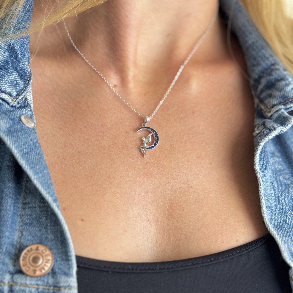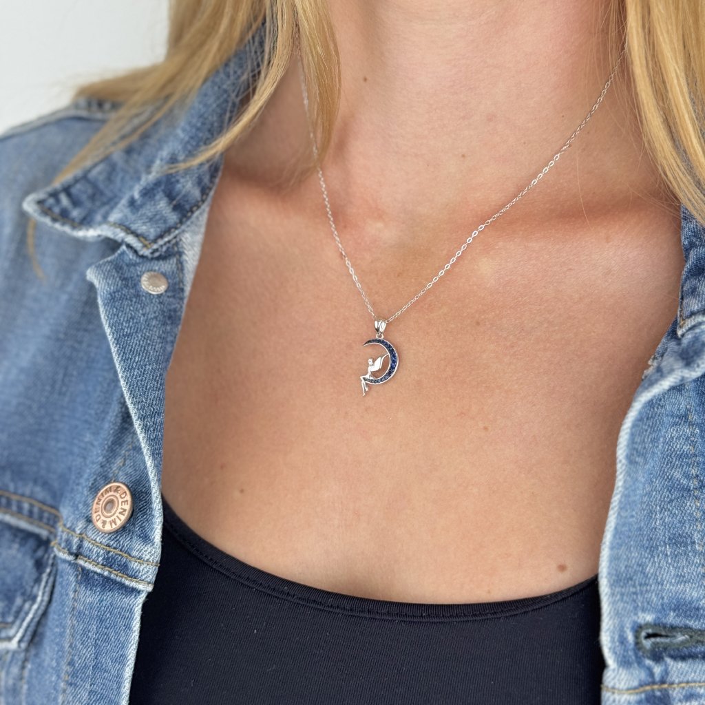 Náš strieborný náhrdelník s mesiačikom a vílou sa dodáva aj v elegantnej darčekovej krabičke, takže je skvelým darčekom k výročiu, narodeninám, sviatku alebo len tak pre radosť. Zamilujte si túto čarovnú kombináciu striebra, modrých zirkónov a rozprávkových svetielok, ktorá dodá vášmu vzhľadu iskru a eleganciu.