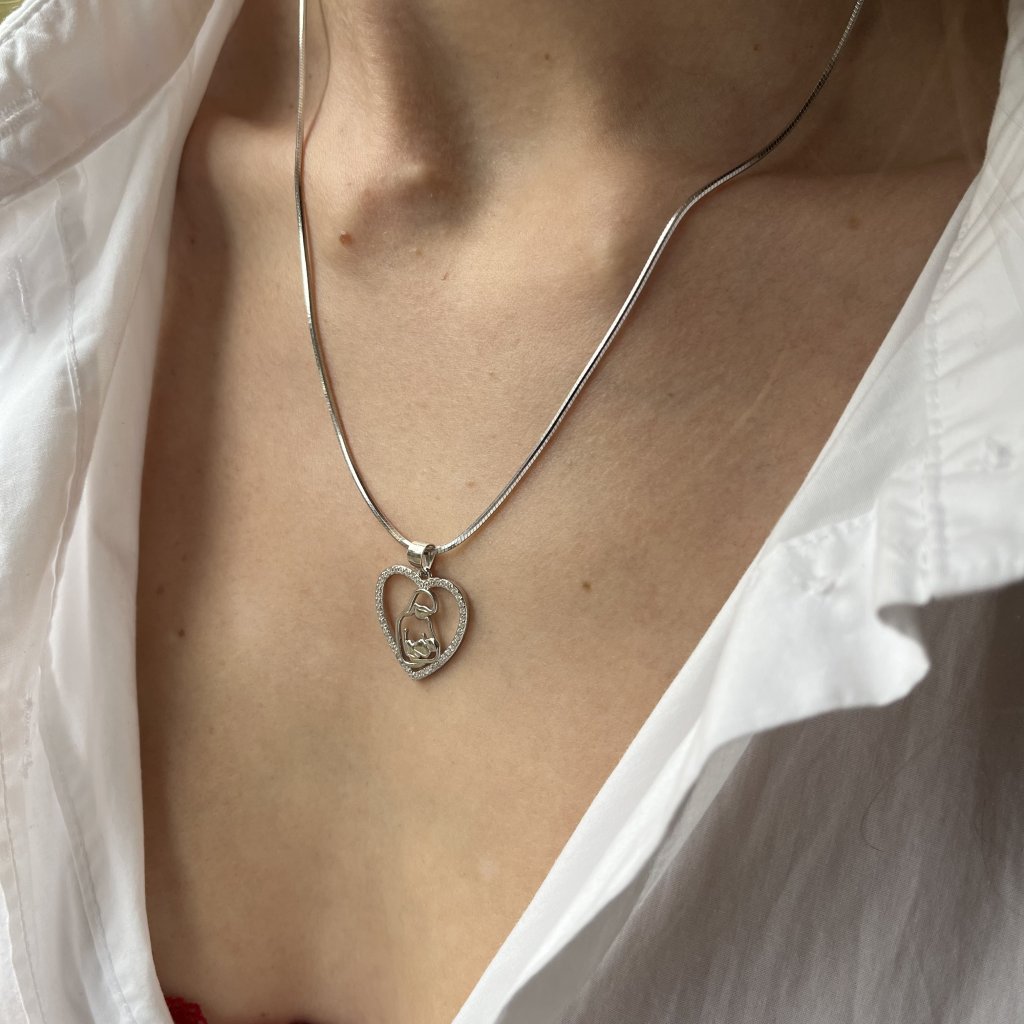 Prívesok s matkou držiacou dieťa v srdiečku so zirkónmi sa dodáva v elegantnej darčekovej krabičke, vďaka čomu je ideálnym darčekom k narodeniu dieťaťa, k MDŽ, k narodeninám alebo len tak pre radosť.