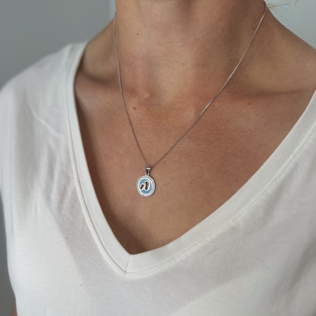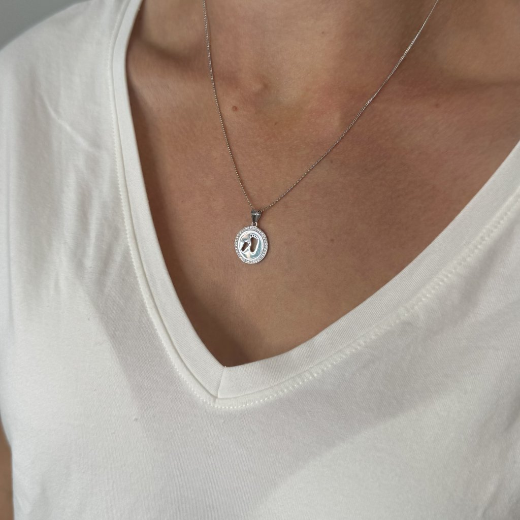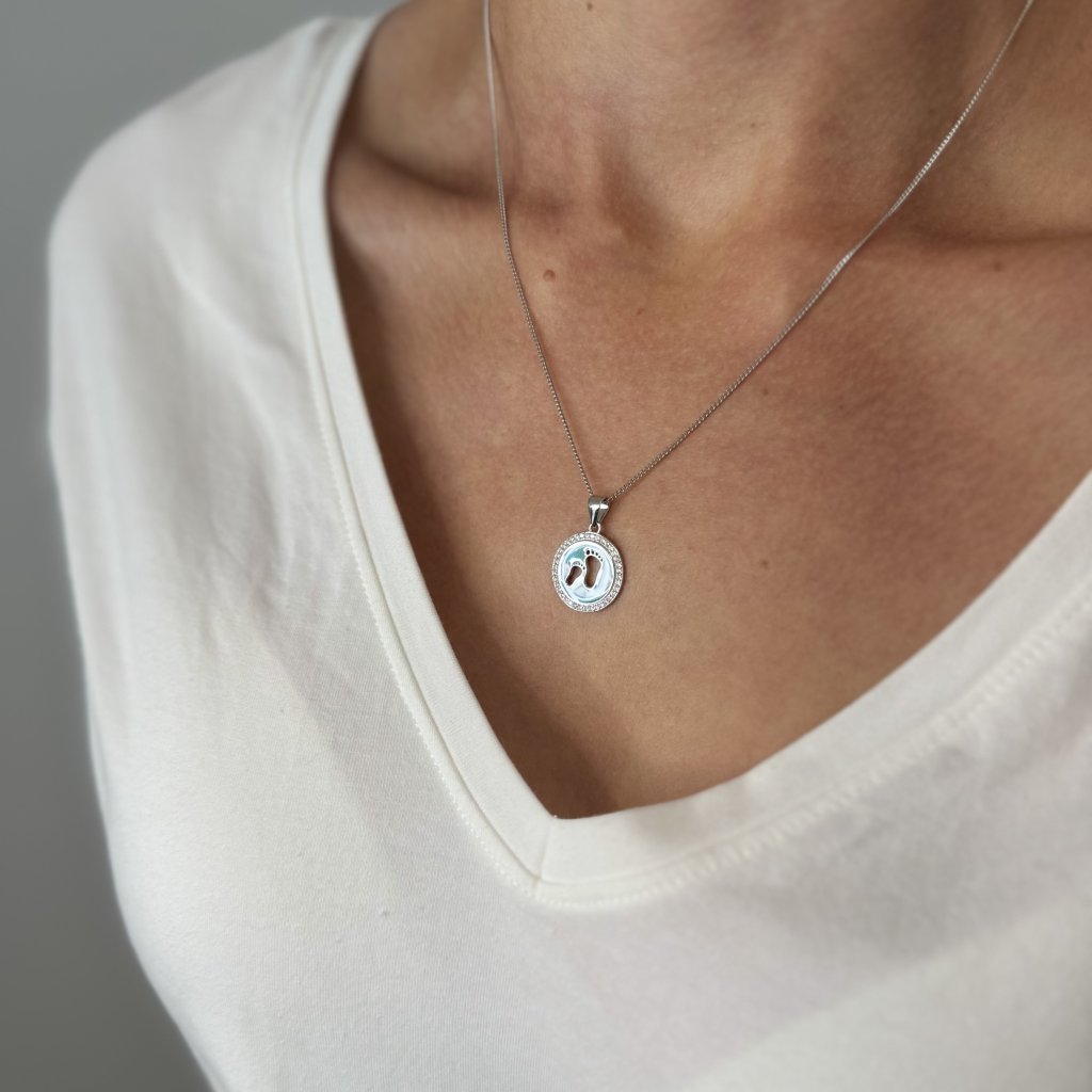 Strieborný prívesok TWO FEETS je krásnym symbolom lásky medzi matkou a dieťaťom. Vyrobený z kvalitného striebra 925/1000 s ródiovaním, ktoré mu dodáva vysoký lesk a chráni ho pred opotrebovaním.