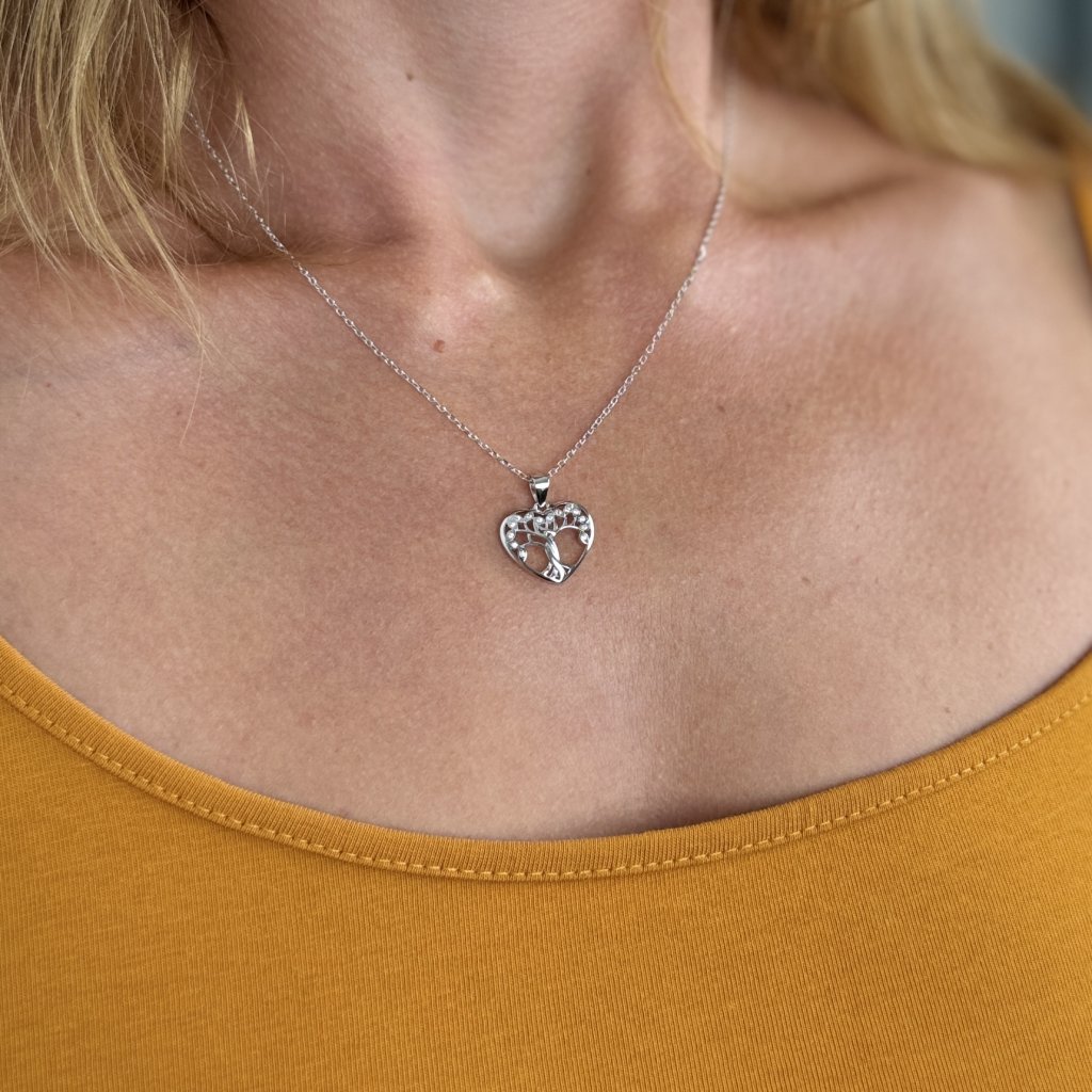 Prívesok má rozmery 16 × 14 mm a zobrazuje strom života, symbol rastu, sily a spojenia, elegantne zasadený do tvaru srdca, ktoré predstavuje lásku a cit. Jemné osadenie zirkónmi dodáva šperku iskru a zdôrazňuje jeho význam. SCARLETT visí na 45 cm dlhej retiazke, vďaka ktorej sa pohodlne nosí. Dodávaný v darčekovej krabičke.