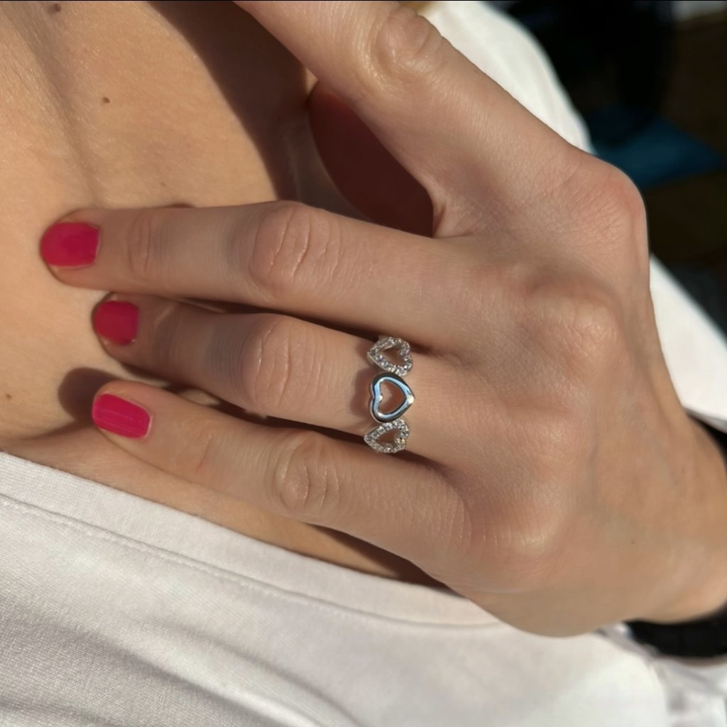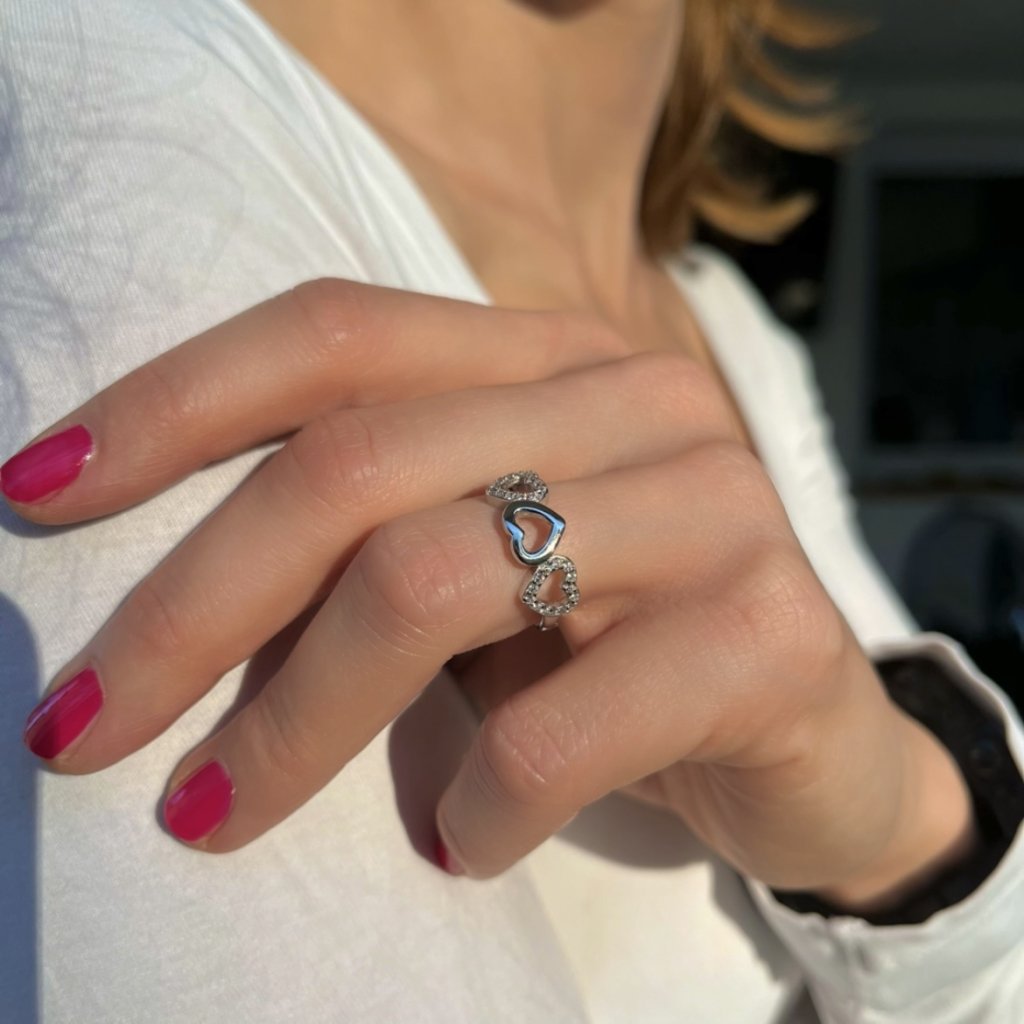 Strieborný prsteň tri srdcia so zirkónmi je oveľa viac ako len šperk. Je vyjadrením lásky, spojenia a nezničiteľného vzťahu. Tri srdcia symbolizujú minulosť, prítomnosť a budúcnosť - tri fázy každej lásky, ktoré sú krásne vyobrazené na striebornom prsteni.