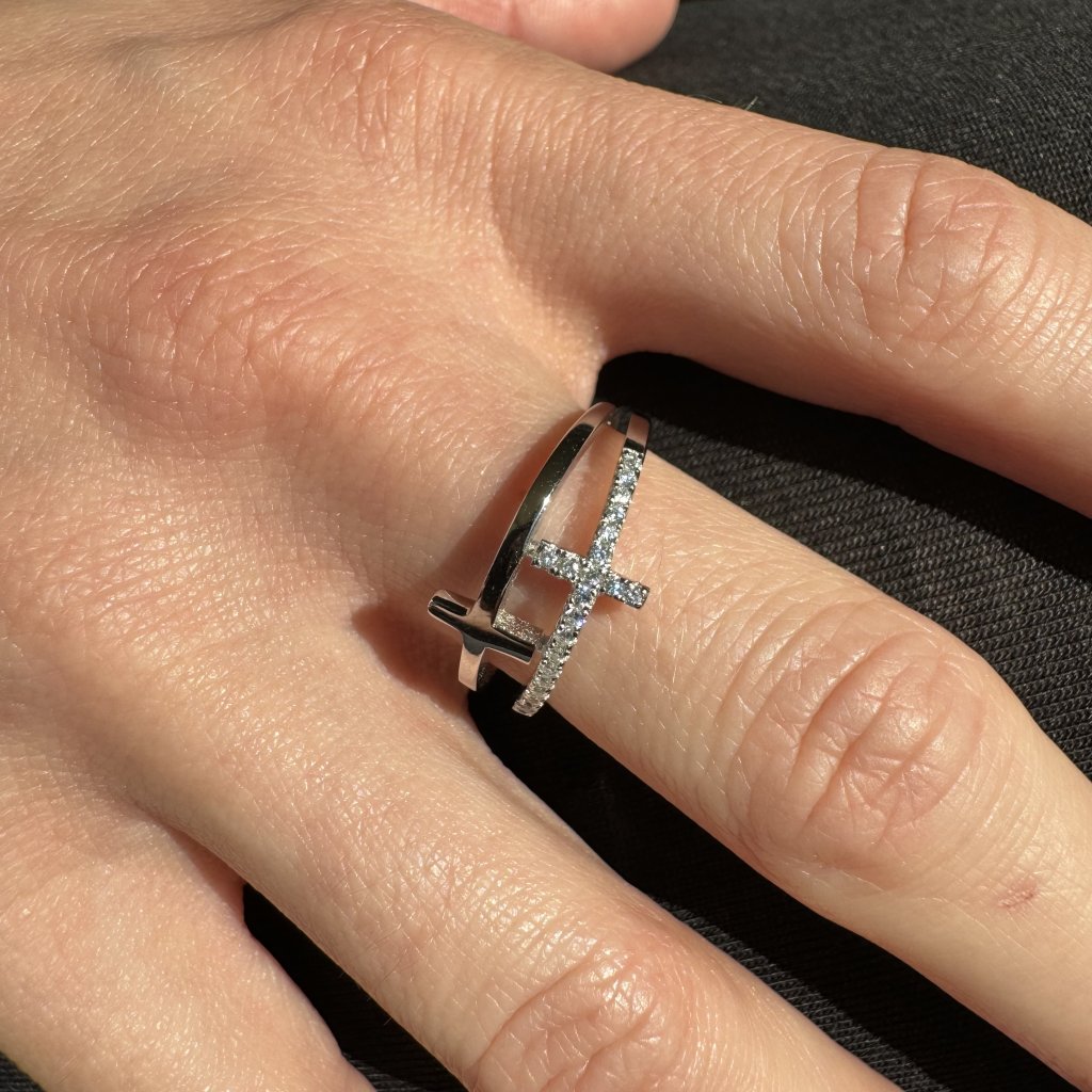 Predstavujeme vám strieborný prsteň s dvoma krížmi, ktorý je viac než len šperk. Je symbolom duchovnej sily a elegancie, dokonale zladený so žiarivými zirkónmi. Tento prsteň je dokonalou symfóniou klasického a moderného štýlu.
