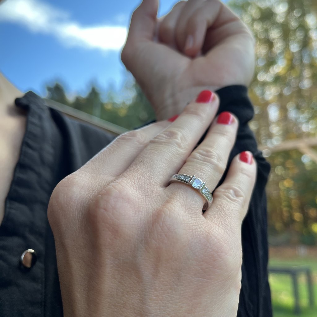 Prsteň je vyrobený z čistého striebra 925, ktoré je známe svojou trvanlivosťou a odolnosťou voči poškriabaniu. Povrchová úprava ródiom dodáva prsteňu ďalšiu estetickú hodnotu a zároveň ho chráni pred oxidáciou. Vďaka tomu si prsteň dlho zachováva žiarivosť a lesk, čo z neho robí ideálny šperk na každodenné nosenie.
