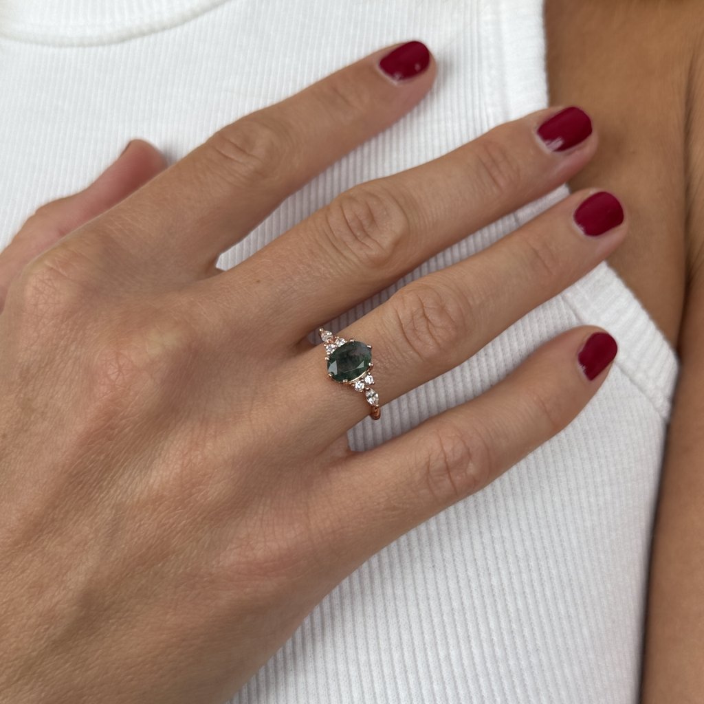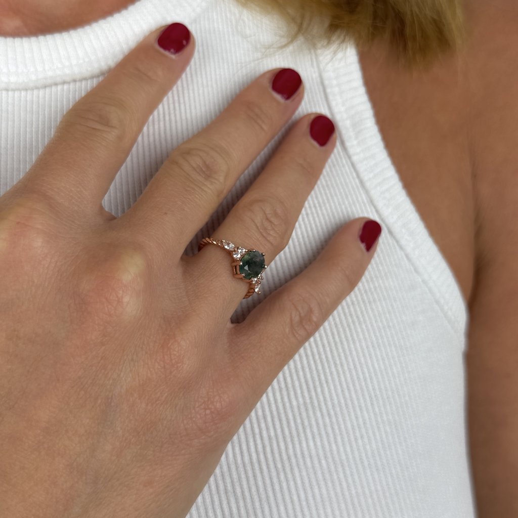 Srdcom prsteňa je nádherný machový kameň s rozmermi 6 × 8 mm, obklopený trblietavými zirkónmi. Pripomína nositeľovi, že je dôležité nájsť rovnováhu medzi prácou a odpočinkom, medzi dávaním a prijímaním.