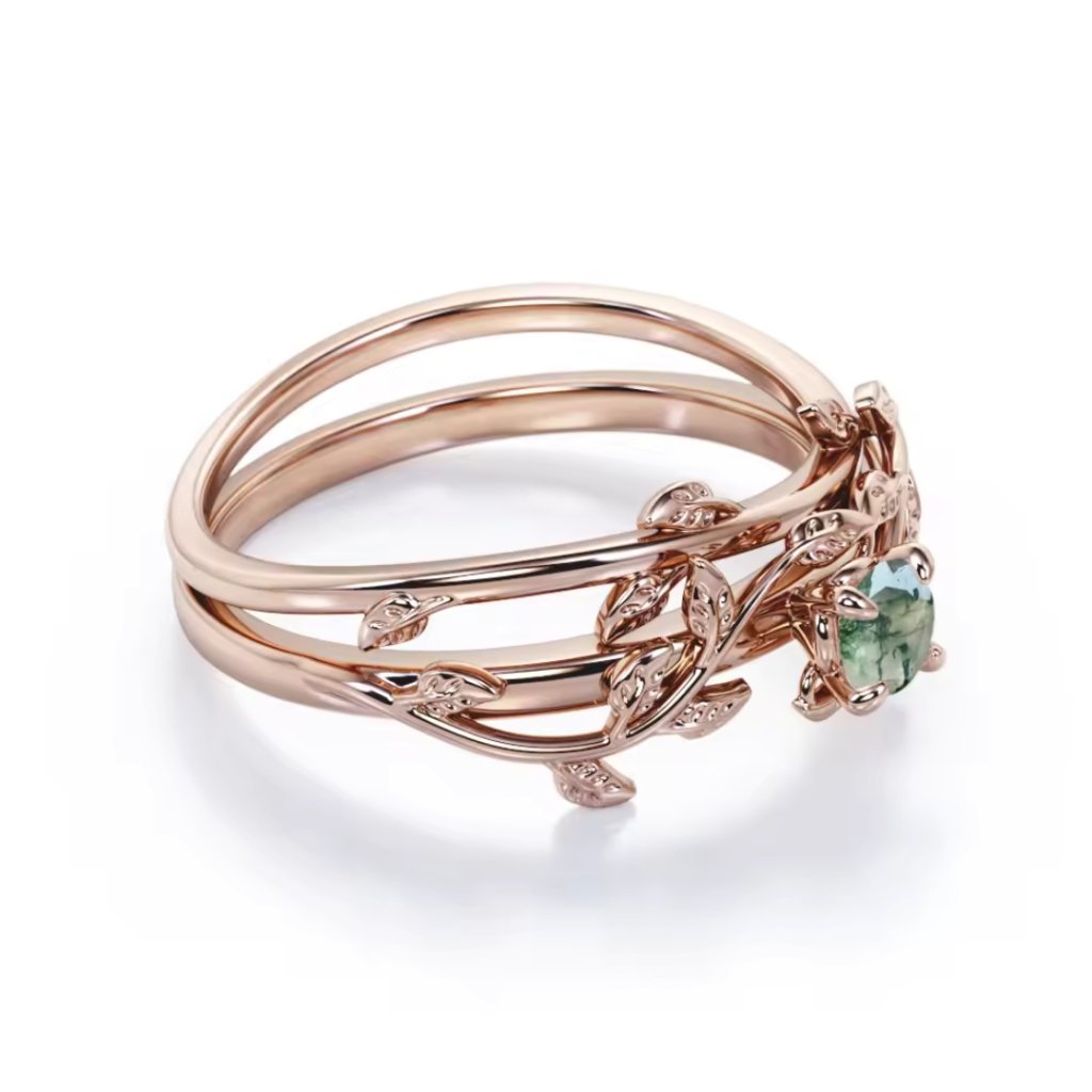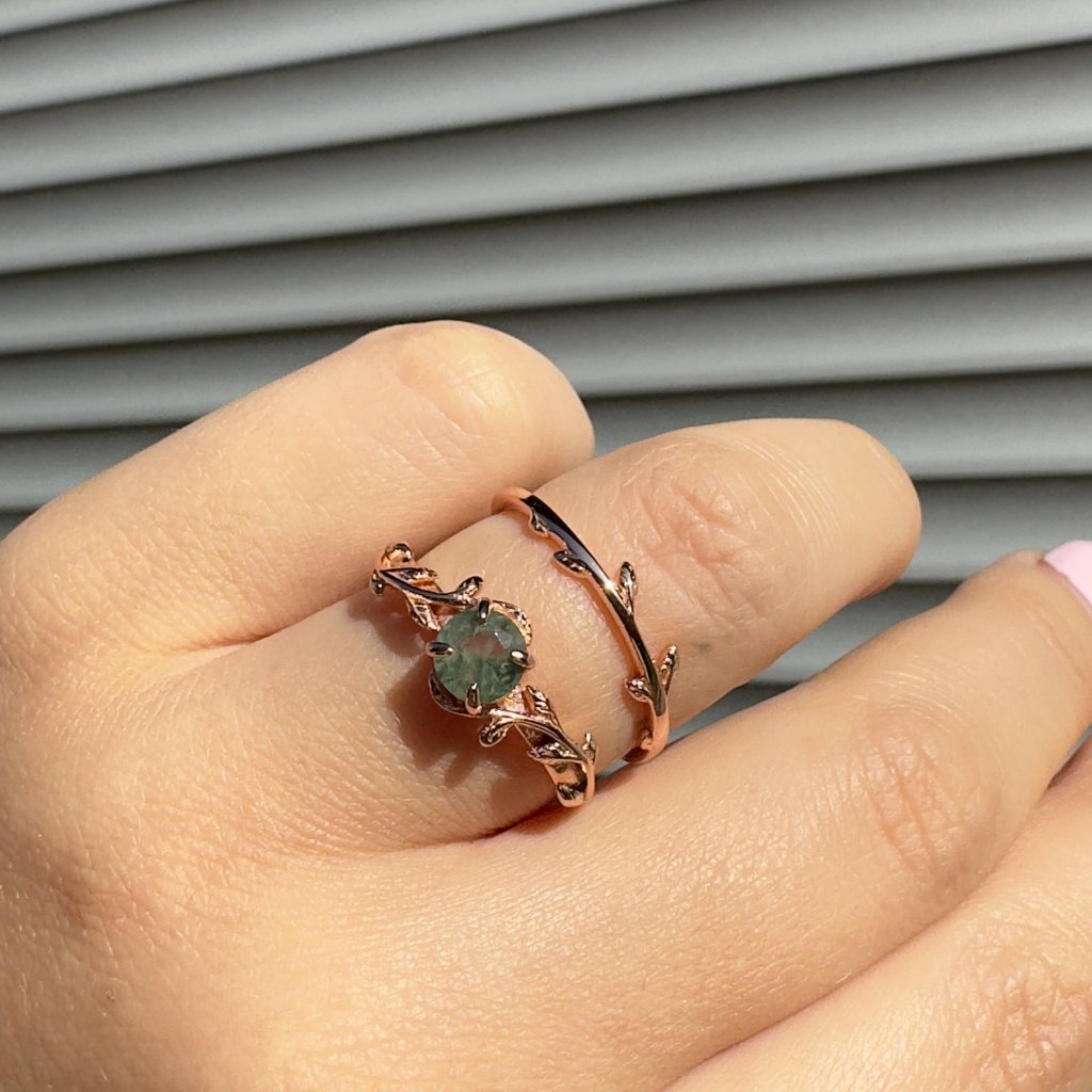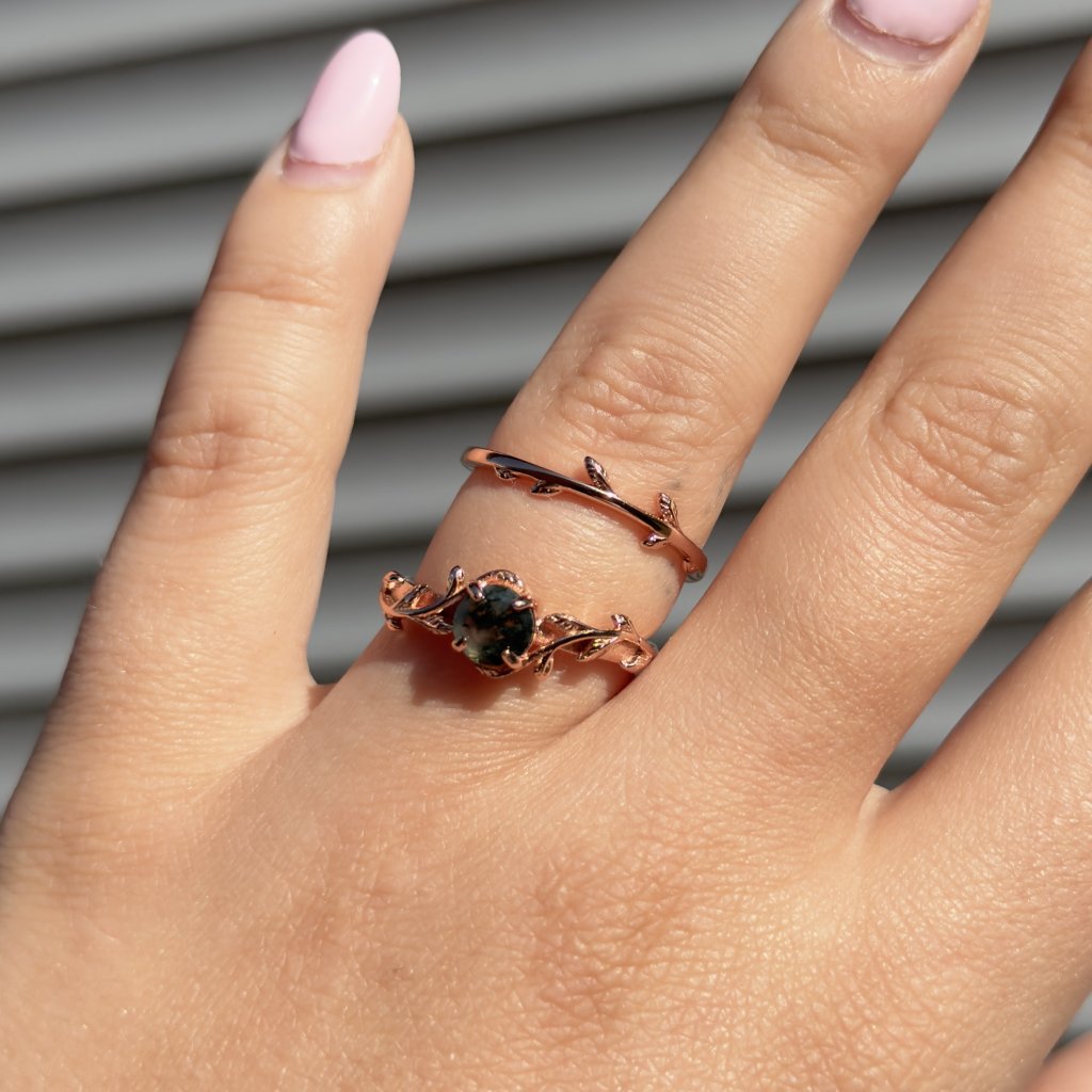 Prstene môžete nosiť spolu na jednom prste, čo symbolizuje komplexnosť vašej osobnosti, alebo samostatne ako pripomienku rôznych aspektov sebalásky. Machový achát, známy svojimi upokojujúcimi vlastnosťami, vám pripomenie dôležitosť vnútorného pokoja a harmónie.