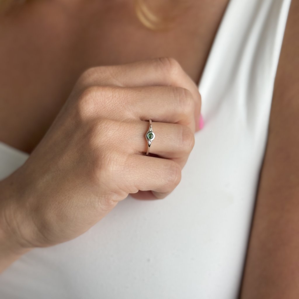 Vďaka šírke iba 1 mm pôsobí prsteň na ruke veľmi jemne a decentne. Jeho univerzálny dizajn je vhodný na každodenné nosenie aj na špeciálne príležitosti. Zelený zirkón dodáva šperku jedinečný charakter a môže symbolizovať rast, harmóniu a rovnováhu.