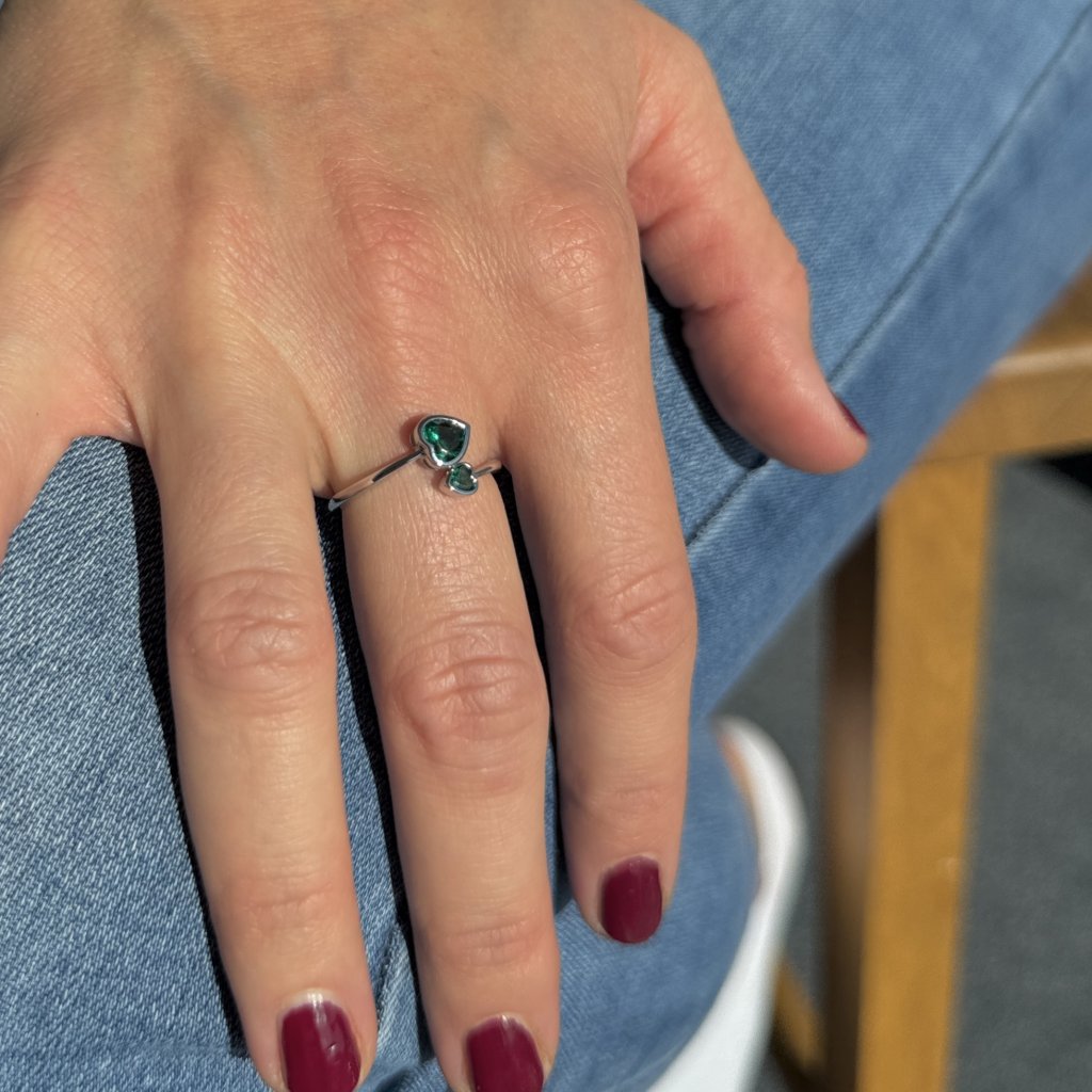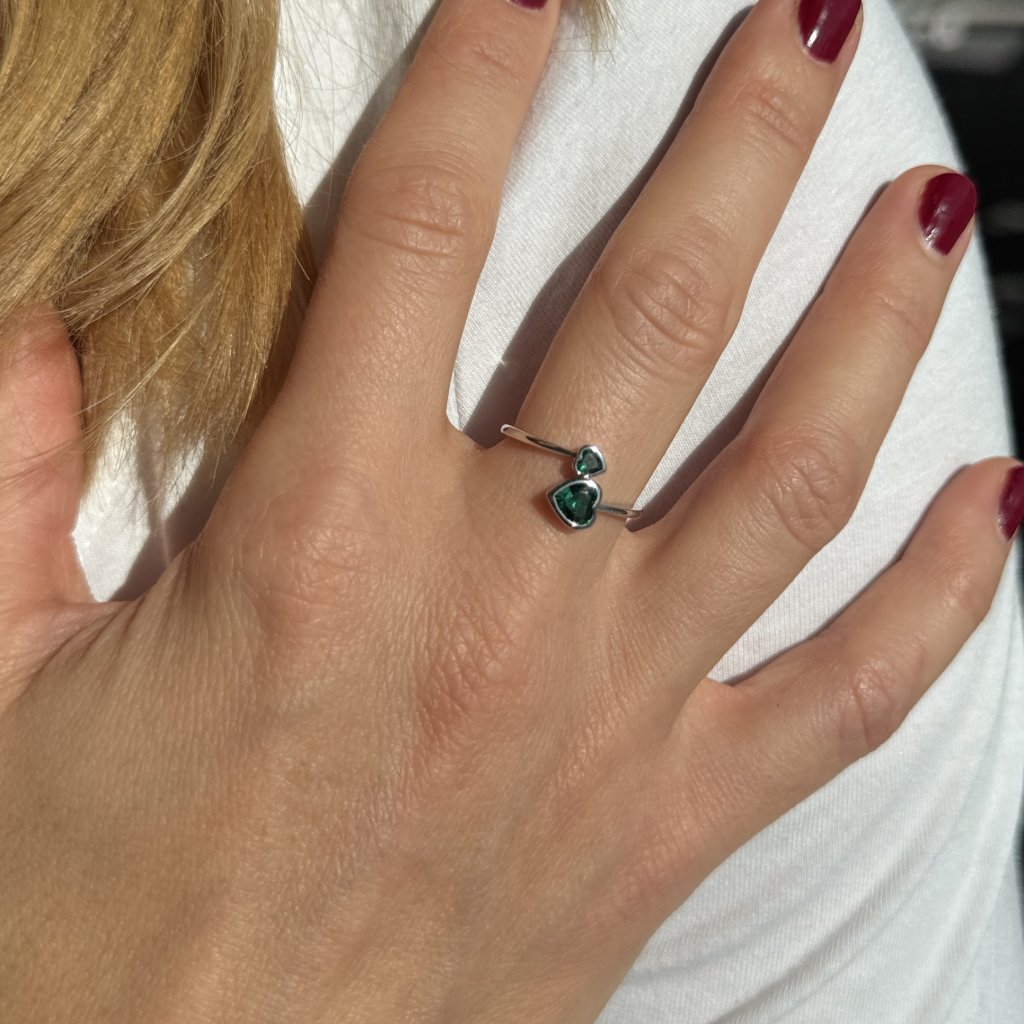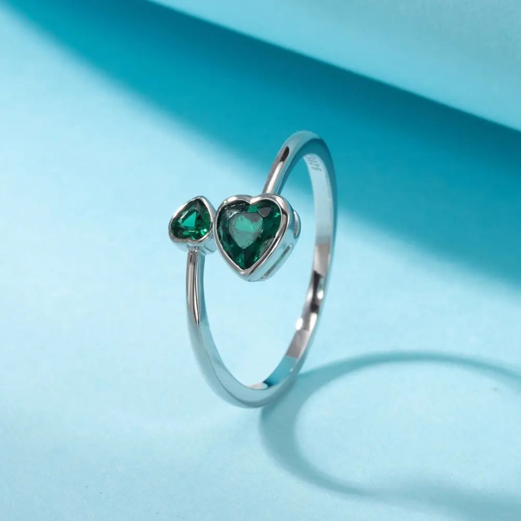 Strieborný nastaviteľný prsteň ROXANA je stelesnením nehy a lásky. Tento prsteň vyrobený z kvalitného striebra 925/1000 zaujme originálnym dizajnom dvoch sŕdc - jedného väčšieho a jedného menšieho - z trblietavých zelených zirkónov. Rhodiovaný povrch zaručuje dlhotrvajúci lesk a ochranu pred oxidáciou.