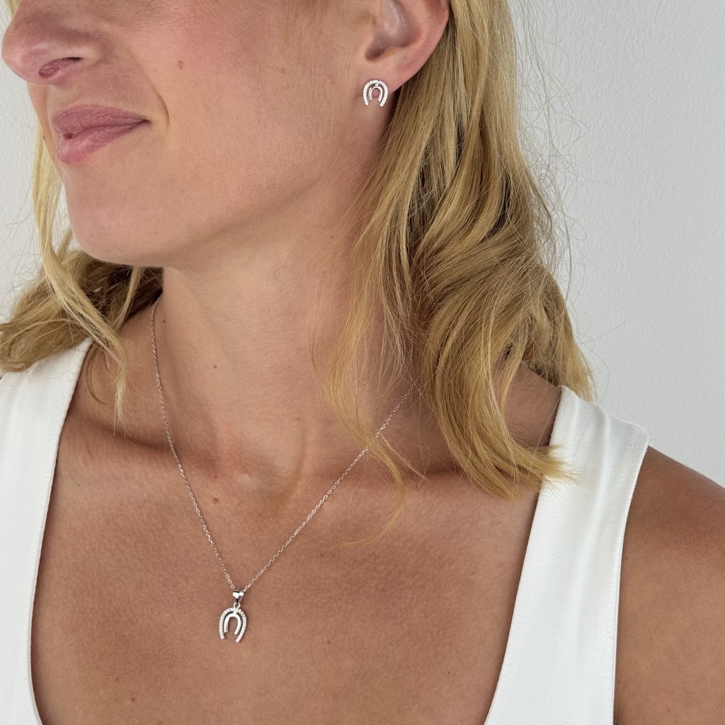 Puzetové náušnice sú nenápadné, ale výrazné, dokážu podčiarknuť krásu každej ženy. Prívesok na retiazke potom môže byť krásnou ozdobou výstrihu. Zapína sa na gombík, čo zaručuje jednoduché a pohodlné nosenie.