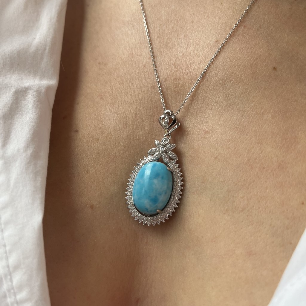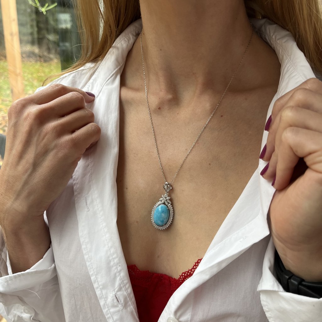 Objavte kúzlo prírodnej krásy v našej striebornej retiazke s tyrkysovým príveskom. Tento jedinečný šperk je vyrobený z čistého striebra 925/1000 a je starostlivo osadený kubickými zirkónmi, ktoré jeho dizajnu dodávajú nádych luxusu a elegancie.