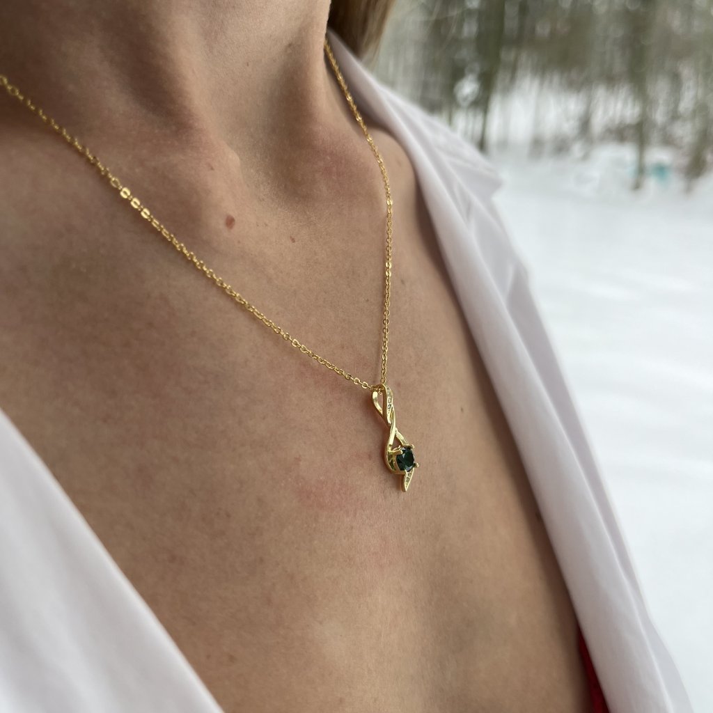 Jedinečný prívesok zdobí nádherný zelený zirkón s priemerom 5 mm, ktorý šperku dodáva iskru a luxus. Retiazka má dĺžku 41 + 5 cm a je nastaviteľná. Prívesok má rozmery 8 x 22 mm, čo je ideálna veľkosť na dosiahnutie výrazného a zároveň nenápadného vzhľadu.