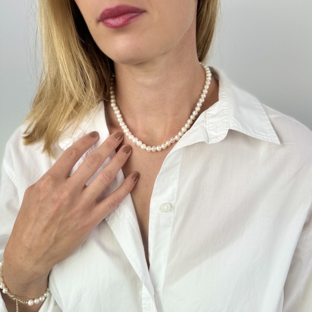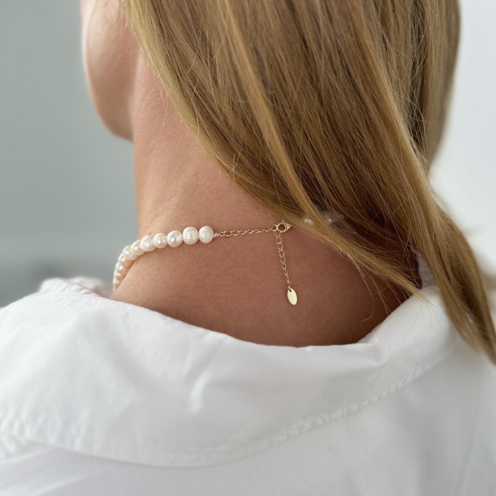 Celá dĺžka retiazky je vykladaná perlami s priemerom 7 mm, ktoré vytvárajú pôsobivý efekt. Pozlátené zapínanie dodáva šperku luxusný nádych a zaujímavý kontrast. Vďaka nastaviteľnej dĺžke 40 + 5 cm sa EDITTE dokonale prispôsobí dámskemu aj pánskemu krku.