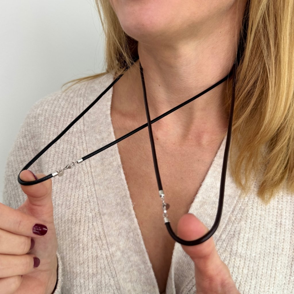 Táto šnúra s dĺžkou 60 cm je ideálna ako dlhý náhrdelník, ktorý môžete nosiť voľne zavesený alebo štýlovo zauzlený. Môžete si ho tiež niekoľkokrát omotať okolo zápästia a vytvoriť tak originálny viacvrstvový náramok. Je ideálny na zavesenie vášho obľúbeného prívesku, ale vyzerá skvele aj samostatne.
