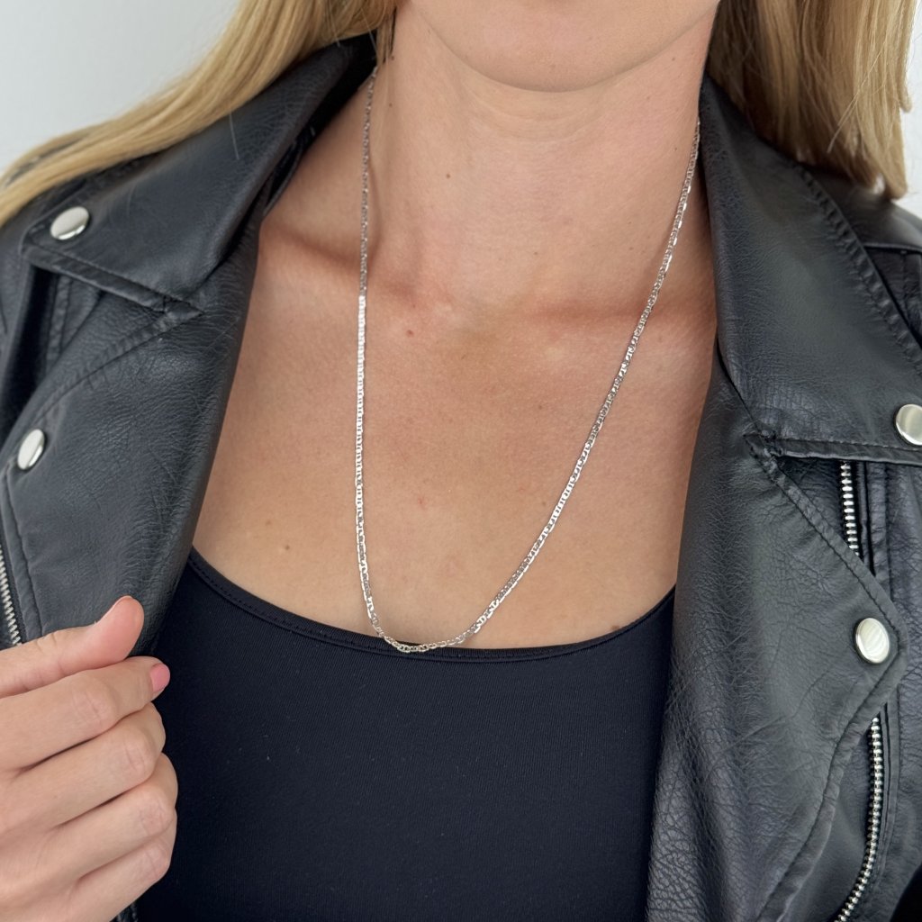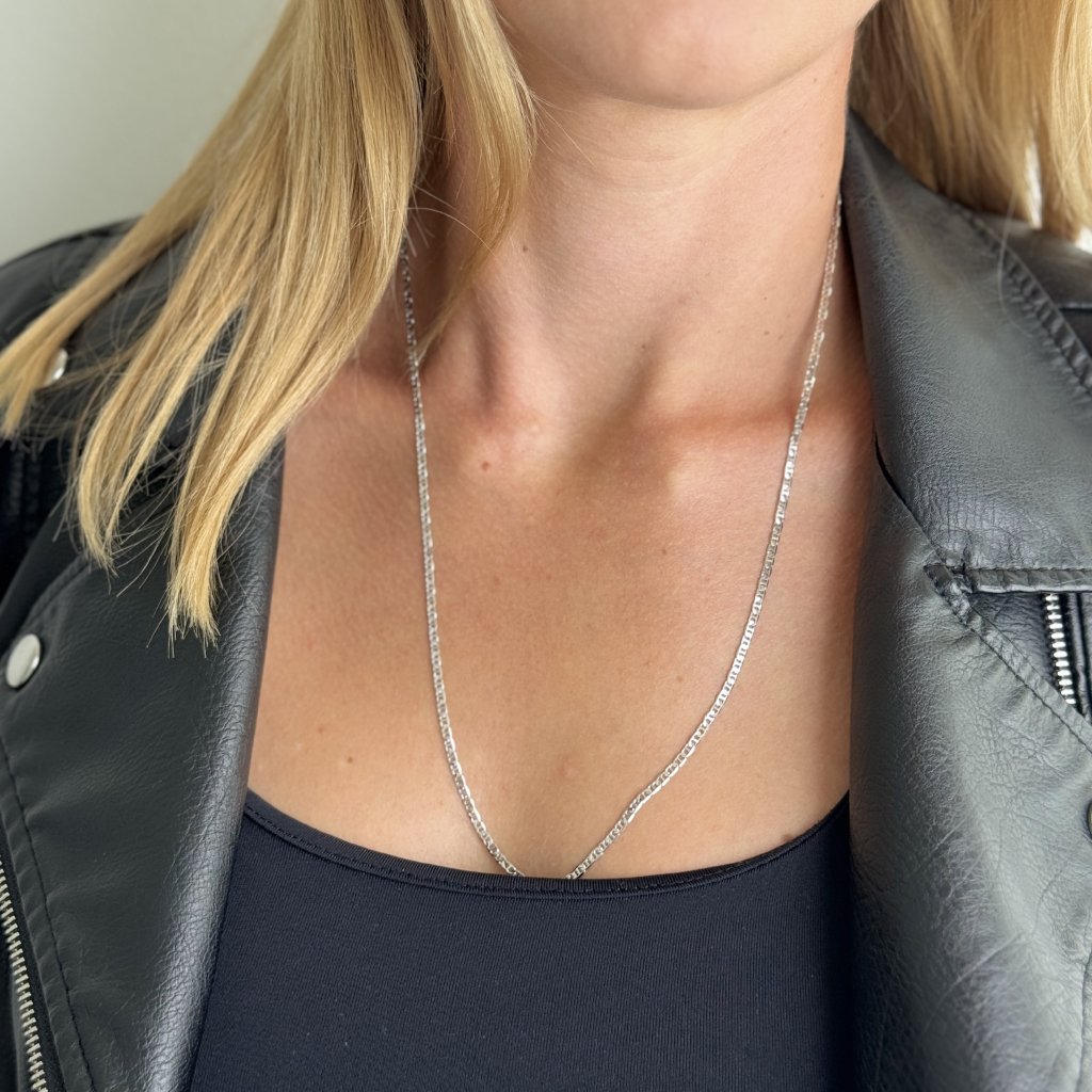 Strieborná retiazka FABIEN v dĺžke 60 cm predstavuje vrchol elegancie a moderného dizajnu. Štýl Flat Mariner sa vyznačuje charakteristickými plochými, vzájomne prepojenými článkami, ktoré vytvárajú výrazný, ale zároveň sofistikovaný vzhľad.