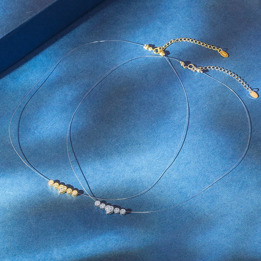 Dominantou šperku sú elegantné prívesky – guľaté číre zirkóny (priemer 3 mm) zasadené do strieborných kruhov, ktoré dokonale odrážajú svetlo a vytvárajú jemné trblietavé efekty. Stredom kompozície prechádza romantický motív číreho zirkónového srdca (priemer 5 mm), symbol lásky a nehy.