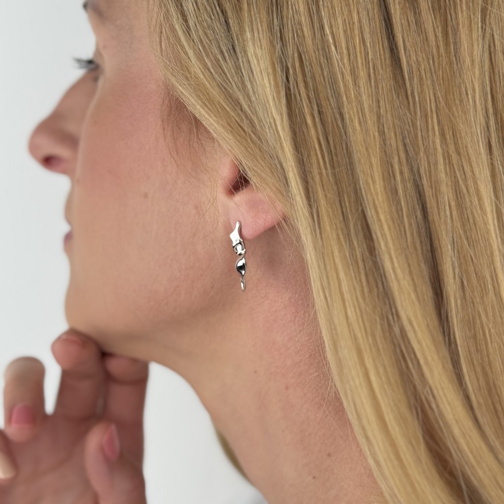 Náušnice AINSLEY predstavujú dokonalú harmóniu moderného dizajnu a klasickej elegancie. Vyrobené z kvalitného striebra 925/1000 s rhodiovanou povrchovou úpravou, ktorá zaisťuje dlhotrvajúci lesk a chráni pred nežiaducim tmavnutím. Puzetové zapínanie poskytuje bezpečné a pohodlné nosenie. S perfektnými rozmermi 25 × 12 mm sú tieto náušnice výrazným, ale stále decentným doplnkom pre každú príležitosť.